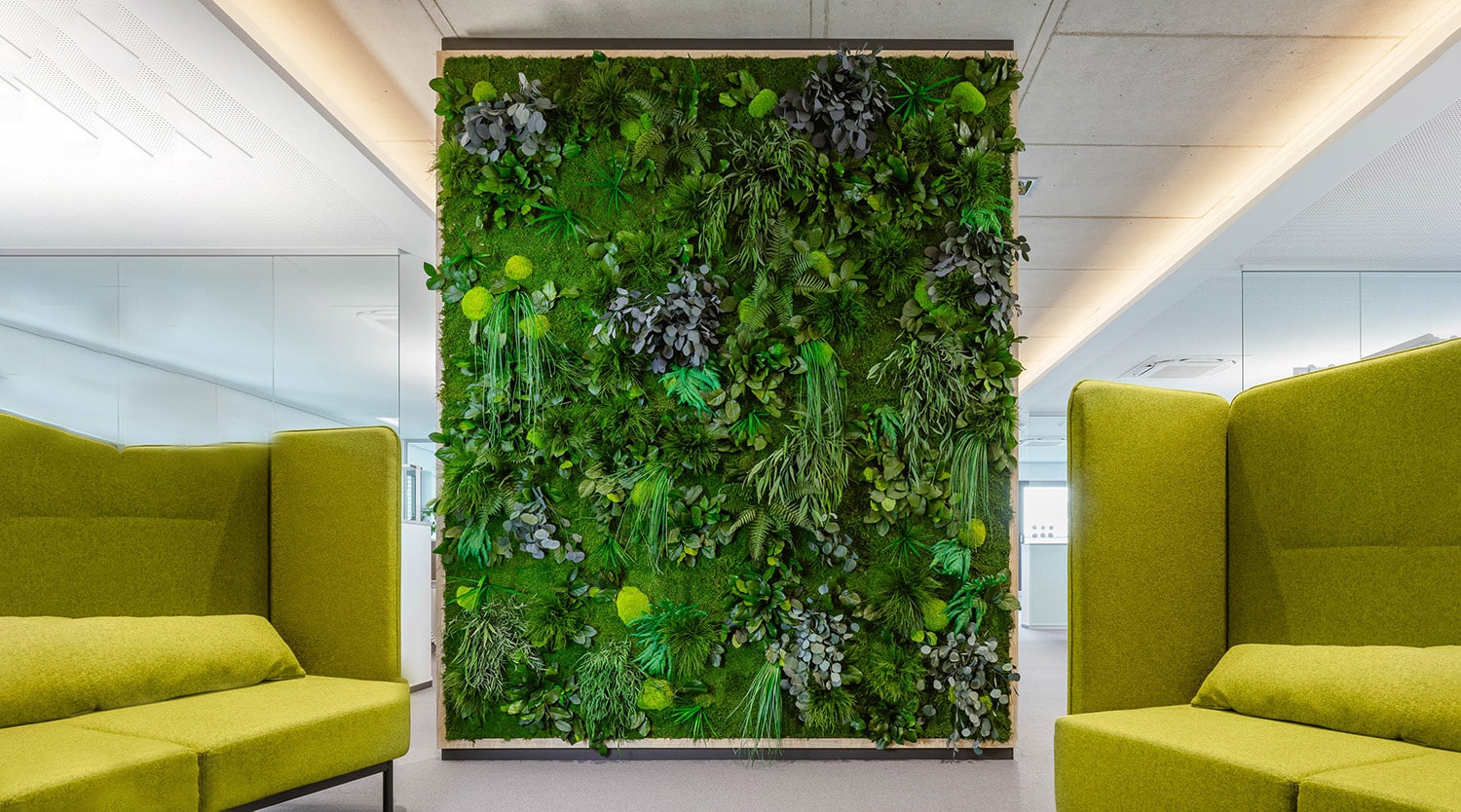 Optimieren Sie Ihr Ambiente mit den vielfältigen Vorteilen unserer Pflanzenwände. Wir bieten individuelle Lösungen für natürliche Wandverkleidungen, gefertigt aus echten, stabilisierten Pflanzen und Moos. Egal ob für Firmengebäude, Büros, Hotels, Restaurants, Ladengeschäfte, Studios, Praxen oder Ihr Zuhause – gemeinsam kreieren wir ein grünes, lebendiges Umfeld. Unsere Pflanzenwände sind nicht nur ein optisches Highlight, sondern tragen auch zu einem verbesserten Raumklima bei.