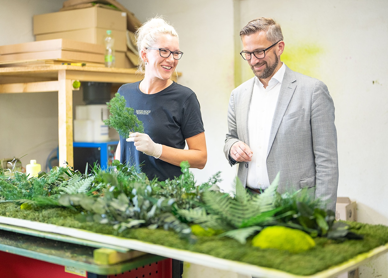 Im Zuge der diesjährigen Wirtschaftstour zu den Schrittmachern der sächsischen Wirtschaft hat uns Staatsminister für Wirtschaft Martin Dulig am 07. September 2022 in unserem Headoffice in Oppach besucht. Neben dem Austausch über Fortschritt und Innovation in der sächsischen Wirtschaft, war Herr Dulig sehr interessiert an unseren Produkten und an der Manufaktur. Aufmerksam verfolgte er die einzelnen Produktionsschritte, war begeistert wie vielseitig unsere einzigartigen Moos-Produkte eingesetzt werden können und welche Wirkung sie erzielen. Seine Begeisterung über unsere Manufaktur und an unseren Produkten ist für uns eine große Freude und wir bedanken uns ganz herzlich für diesen tollen Besuch.